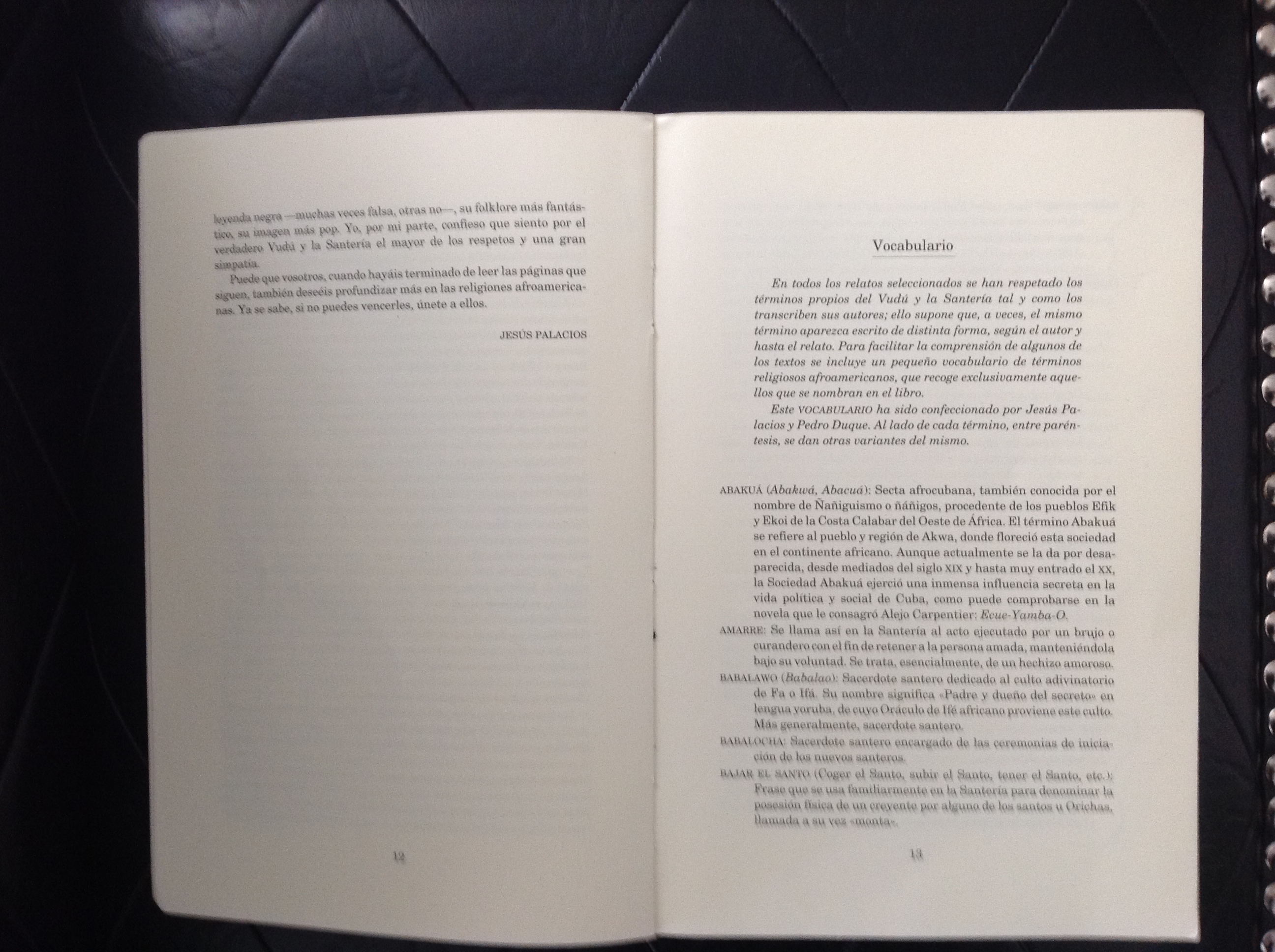 Vocabulario confeccionado para el mejor entendimiento de conceptos mencionados en los relatos incluídos en el libro Amanecer Vudú con los términos propios del Vudú y la Santería tal como lo transcriben los autores
